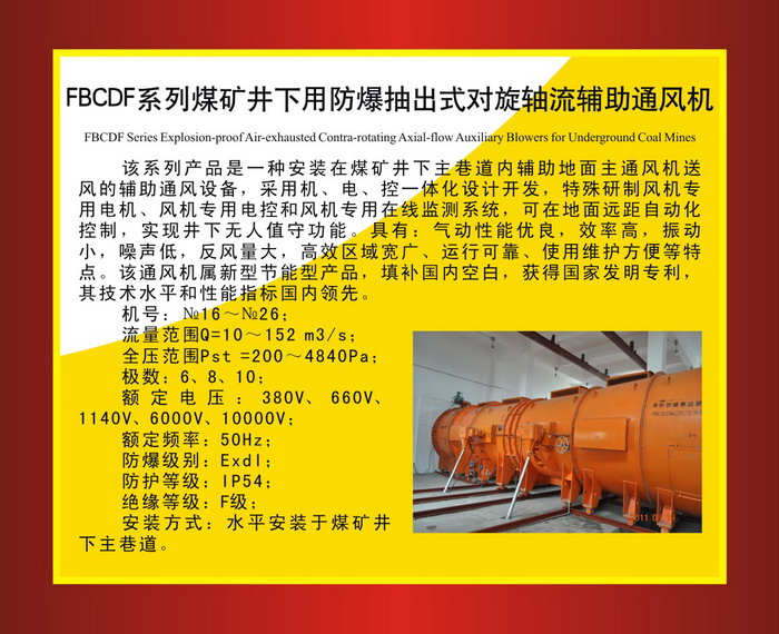 簡要說明:FBCDF系列煤礦井下用防爆抽出式對旋軸流輔助通風機